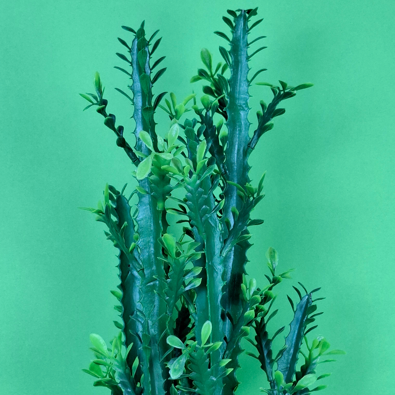 Der Euphorbia ist eine stabile Kunstpflanze. Der Standfuss sorgt trotz seiner beachtlichen Höhe für ein sicheres Platzieren im Terrarium.