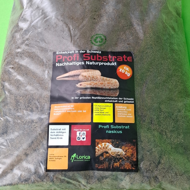 Das Lorica Nasicus Substrat wurde speziell für Hakennasennattern entwickelt. Diese Schlangenart bevorzugt Substrat in dem sie sich auch mal etwas einbuddeln und verstecken kann. Die grabfähige Mischung eignet sich somit bestens für diese wunderschöne Schlangenart.