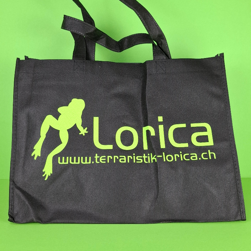 Die stabile und sehr geräumige Einkaufstasche bietet viel Platz für Terraristik-Einkäufe und ist ein Muss für jeden Lorica-Fan.